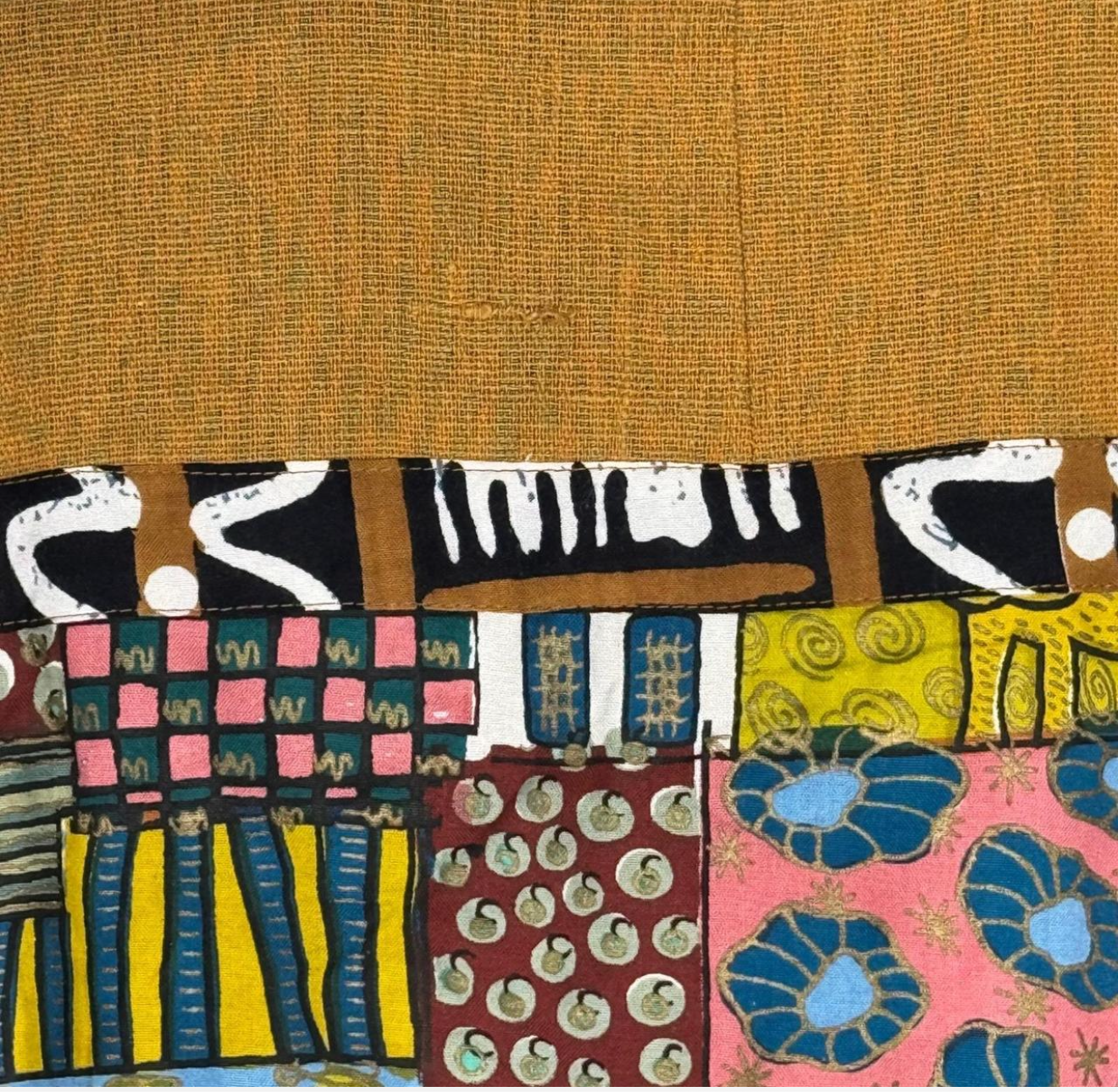 Eye-catching kimono jacket featuring a unique animal print design. This statement piece showcases a variety of African animals such as elephants, giraffes, and zebras, complemented by colorful geometric patterns. The open-front design and relaxed fit make it a comfortable and stylish layering option. Perfect for adding a touch of global flair to your everyday outfits, wearing as a standout piece at art gallery openings, or styling for a casual weekend brunch.